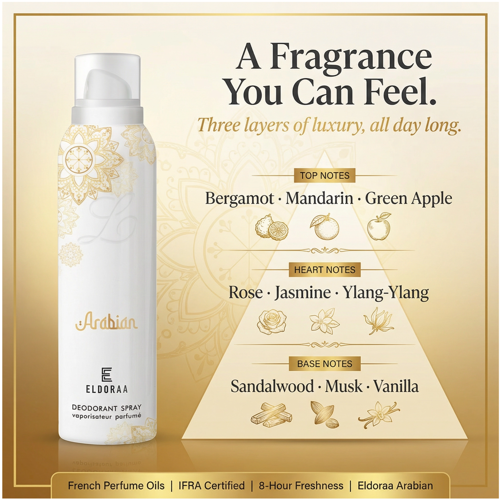 We’ve all had the experience of seeing ads that promise the world, bought it, and realised it wasn’t quite as advertised. That's no good. We at ELDORAA take a different approach before launching any perfume: